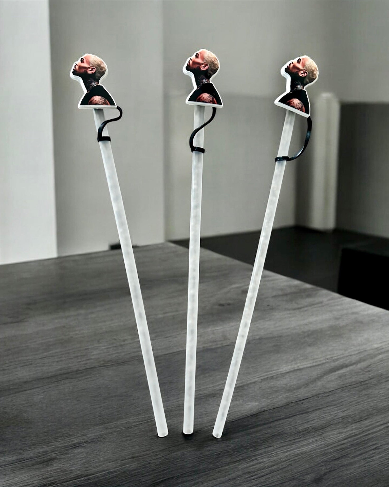 Sip in style with this exclusive Chris Brown bundle featuring a premium stainless steel tumbler cup paired with a custom straw topper. Made from durable, flexible PVC, they fit 6–8mm straws and help protect your drink from dust and debris. Stylish, washable, and perfect for everyday use or gifting to any fan.